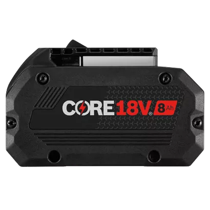 The Bosch CORE18V® 8 Ah High Power Battery delivers 50% more runtime and over 75% more power than the CORE18V® 4 Ah battery, powering high-demand applications. The GBA18V80 features two layers of enhanced 21700 cells for greater battery efficiency. The battery has Bosch-exclusive CoolPack™ 2.0 technology, which cools the battery faster and helps provide longer lifetime compared to Bosch 18V batteries without CoolPack™ 2.0. With its cutting-edge battery design – including copper end plates, power rails and a flexible circuit board – it offers reduced resistance and increased efficiency. It weighs only 2.14 Lbs., for the ideal balance of size, weight and power. It includes a charge-status Indicator with high resolution for clear visibility. This battery is engineered for 18V, and it's compatible with Bosch 18V tools. The GBA18V80 is optimized to drive Bosch PROFACTOR™ tools with BITURBO Brushless™ Technology, for power comparable to the most demanding corded tools. The battery is compatible with Bosch 18V chargers and the AMPShare™ System. The AMPShare™ System is a battery system designed to be multi-brand compatible across many cordless products to make managing your work day easier.