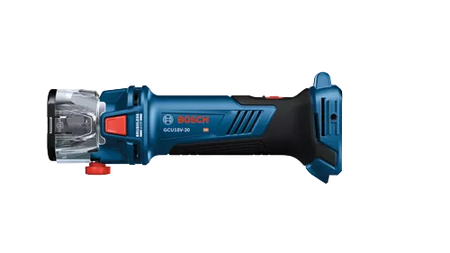 The Bosch GCU18V-30N 18V Brushless Cut-Out Tool provides fast professional cutting, for better productivity. The compact tool is ergonomic and provides straightforward handling. It has a slim-grip design. The brushless motor provides corded-equivalent performance. When paired with the Bosch GBA18V40 CORE18V 4.0 Ah Compact Battery (sold separately), this cut-out tool can cut up to 300 linear Ft. on a single charge. The convenience brake quickly stops the tool. The adjustable foot plate provides depth adjustment, to easily control the depth of cut. The cut-out tool features soft-start technology, which reduces startup torque, and an LED light on the cut-line that illuminates the dark work areas that are often common on interior finishing applications. It also features an IP 5X-rated dust-resistant switch to help prevent dust from getting into the switch. It withstands dusty jobsite conditions, and is IP 5X rated. This tool is ideal for drywall and plasterer pros, with cutting in acoustical tile, plywood and more. This is a bare-tool kit; the battery and charger are sold separately.