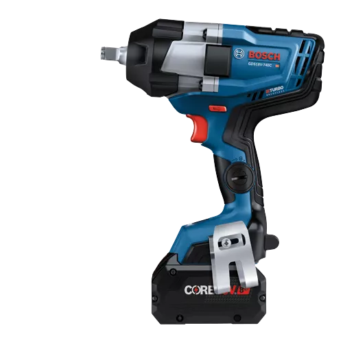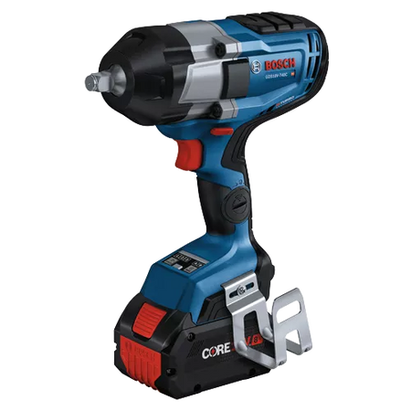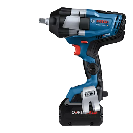The Bosch PROFACTOR™ GDS18V-740C 18V Connected 1/2 In. Impact Wrench with Friction Ring is designed for breaking free and driving large bolts, nuts and anchors quickly. It is part of the PROFACTOR™ System, which pairs BITURBO Brushless™ Technology with a CORE18V® High Power Battery. BITURBO Brushless™ Technology is a high-performance motor and drive-train system designed to deliver power comparable to high-demand corded tools. The tool delivers up to 740 Ft.-Lbs. fastening torque and 1,180 Ft.-Lbs. breakaway torque, while maintaining long runtime. In addition to three speed/torque settings this impact wrench also features special modes to help prevent workpiece and fastener damage. The presets include modes for metal screws and wood lag screws. Additional modes and customizations for specific screws and materials can be set and saved to the tool via the Bosch Toolbox App (connectivity module included). In reverse, with bolt mode activated, the Auto Bolt Release stops rotation when there is no load on the tool to help prevent accidentally dropping bolts and nuts during removal. In addition to customizing settings and modes, connectivity (connectivity module included) provides tool specific information and feedback. The variable-speed trigger provides accurate driving speed. It also has an LED light system to illuminate the work area. The wrench features a rubber head casing that helps protect workpiece and tool from damage. The kit includes a CORE18V® 8 Ah High Power Battery, which delivers 50% more runtime and over 75% more power than the CORE18V® 4 Ah battery, powering high-demand applications.
