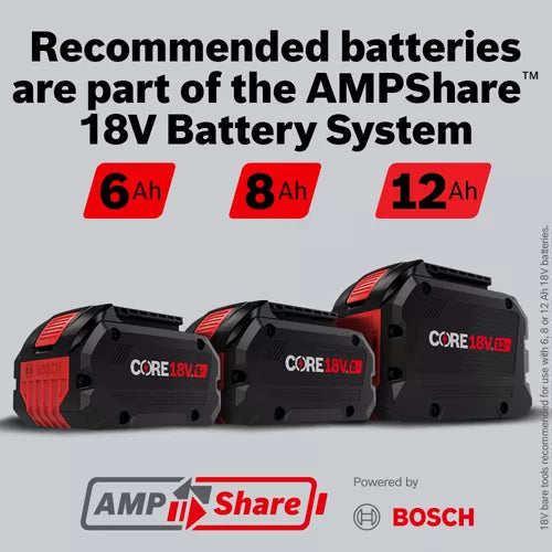 - AMPShare™ System compatibility – 18V batteries and chargers are compatible with Bosch 18V power tools and a growing list of cordless products from AMPShare™ brands