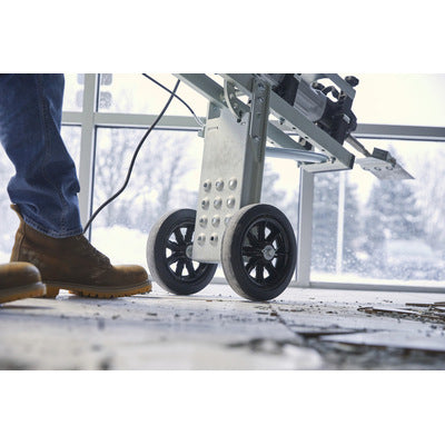 The Bosch GHT130 Floor Removal Cart is a groundbreaking handling assistant that, when combined with the 11335K Hammer (1-1/8" shank breaker; not included), transforms floor demolition jobs by reducing fatigue and increasing productivity. Ideal for the fast and easy removal of floor tiles, vinyl, cork from concrete, wooden surfaces and more, the cart helps to carry the weight of the hammer, reducing strain on the operator. With five adjustable positions, floor removal can be done more efficiently and ergonomically while using this innovative cart. Large, sturdy wheels allow the cart to be moved around with less effort, even on big, commercial flooring jobs. The star knob mounting system allows for the hammer to be easily installed and removed, saving time and hassle while on the job.