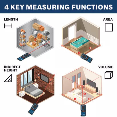 - Multiple measuring features – calculates distance, area, volume and indirect measurements