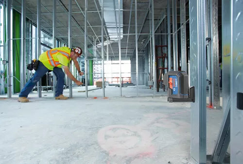 - Three-point plumb and level point projection – accurately transfers and aligns level, plumb, 90° and grade points
