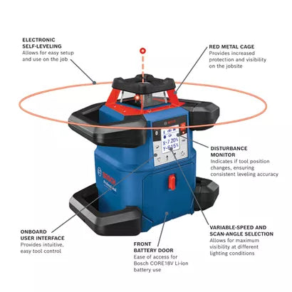 BOSCH GRL4000-80CHVK, 18V REVOLVE4000 Connected Self-Leveling Horizontal/Vertical Rotary Laser Kit with (1) CORE18V® 4 Ah Advanced Power Battery