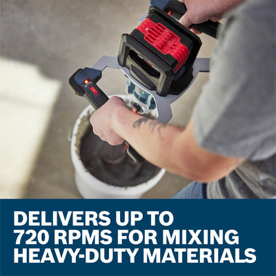 - Brushless motor – delivers up to 720 rpms for mixing heavy-duty materials while maximizing runtime