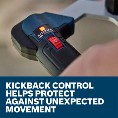 - Kickback control – helps protect against unexpected movement when mixing tough materials