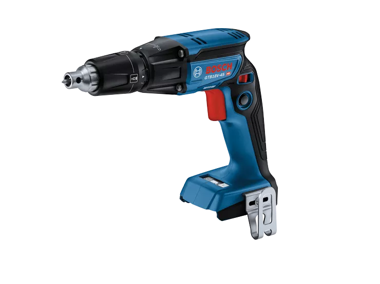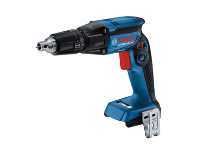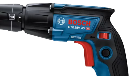 The Bosch GTB18V-45 18V Brushless 1/4 In. Hex Screwgun is designed to get the job done comfortably and fast, without the power cord, when driving drywall screws. This light screwgun features a well-balanced ergonomic grip ideal for comfortably holding the tool, allowing the thumb and the index finger to control the operation. It features Xtend Drive, an intelligent lock-on mode that activates the motor only when the bit senses pressure The tool remains operational but is quiet between screw activations, increasing runtime while decreasing noise. The screwgun has been designed to keep the user’s hand closest to the work material, for max control. And it features a retractable depth gauge, so the user doesn’t have to remove the cone on the tool to reverse out a screw. With an efficient brushless motor, this tool delivers 4,500 max rpm to drive drywall screws into sheet rock, gypsum board and metal or wood studs. This variable-speed screwgun features an easy-to-use lock-on switch and an LED light.