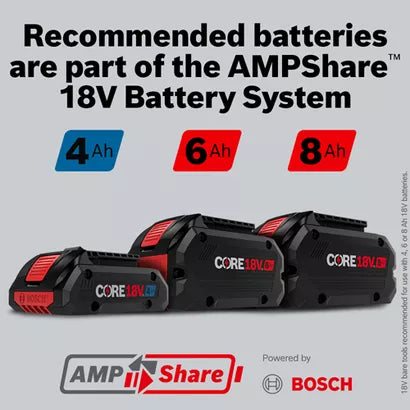 - AMPShare™ System compatibility – 18V batteries and chargers are compatible with Bosch 18V power tools and a growing list of cordless products from AMPShare™ brands