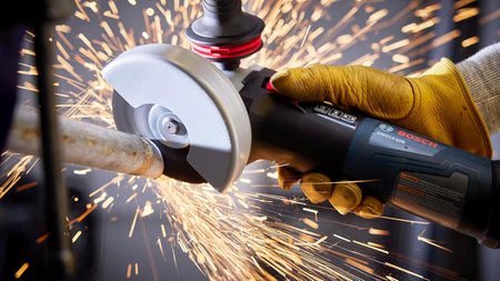Compact yet powerful, the Bosch GWS14-50B 5 In. angle grinder with slide switch and brake combines high performance and comfort for a variety of grinding and cutting applications. The powerful 13-amp motor delivers 11,500 rpm for maximum performance and productivity. A narrow, lightweight design provides an outstanding power-to-weight ratio and better ergonomics. Fitted with slide switch and anti-vibration side handle for increased user comfort and control in longer applications. The brake system quickly stops the wheel when the tool is switched off for added user protection. Enhanced motor cooling with air inlets on the backside delivers improved direct cooling and dust protection. Engineered with features such as KickBack Control, soft start, drop control, overload and restart protection. Compatible with existing Bosch grinding guards and shrouds for use in a range of metal and concrete applications.