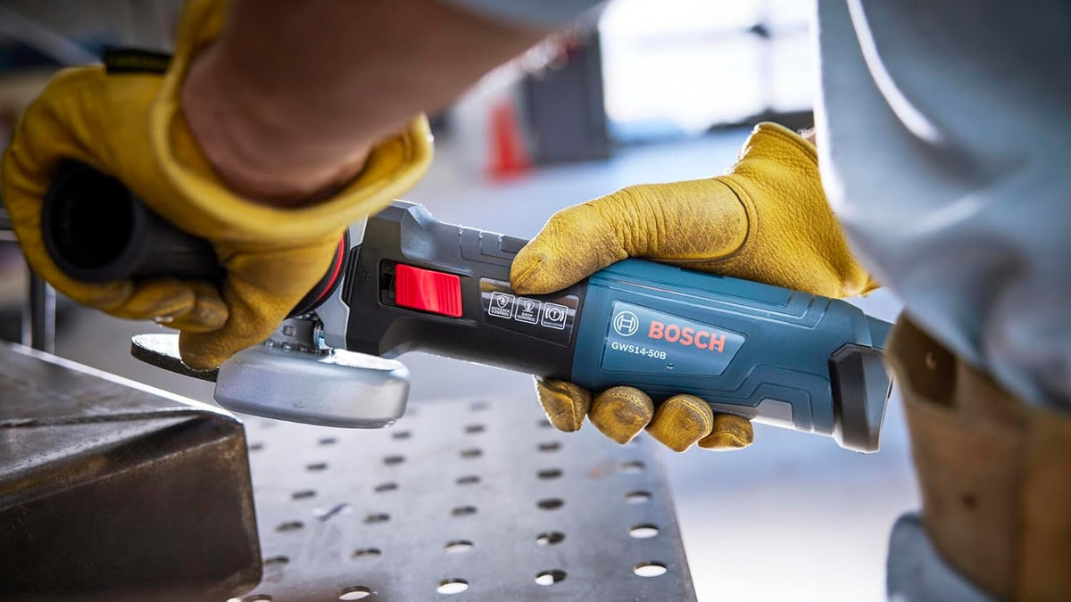 BOSCH GWS14-50B, 5 In. Angle Grinder Compact Powerful Motor with Slide Switch and Brake for High Performance Grinding and Cutting Applications