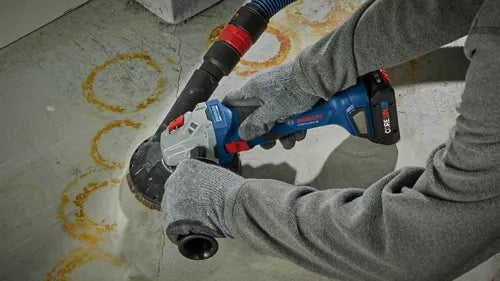 The Bosch GWS18V-8 is an ergonomic angle grinder that combines portability, performance and best user comfort. Its brushless motor provides comparable 8.0 amps of power and greater efficiency that maximizes runtime and productivity. This 4-1/2 In. 18V grinder has restart protection to help prevent accidental start-up when switching batteries and soft-start technology to reduce startup torque and ease into cuts, and overload protection to reduce the risk of the motor overloading or overheating. It is designed with spiral bevel gears that provide smooth transmission of power to grinding applications. It also features an adjustable tool-free guard and an updated gearhead mounting collar, which is now compatible with all Bosch metal and concrete guards. This tool features a two-position side handle, slim soft-grip design and spindle lock.