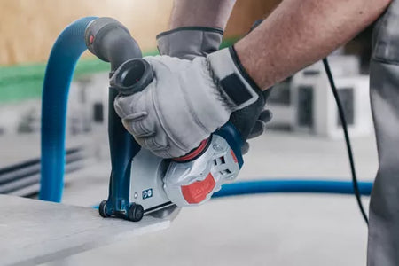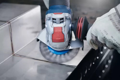 The Bosch GWX10-45PE 4-1/2 In. X-LOCK angle grinder features the X-LOCK mount, offering a wheel change interface that's up to five times faster than conventional interfaces. There’s an audible snap when mounting an X-LOCK Wheel on an X-LOCK grinder. The wheel mounts properly without the need for a spanner wrench or flange nuts. The wheel is released from the grinder with the pull of a lever. The grinder features a narrow grip zone. The GWX10-45PE ergonomic grinder features a narrow grip zone for extended comfort and control, combined with a powerful 10-amp motor. It delivers results, producing up to 11,000 no-load rpm for maximum productivity in grinding and cutting applications. The tool weighs 4.6 Lbs. It features a multi-grip lock-on paddle switch, which provides increased grip options for better ergonomics, comfort and control. Equipped with epoxy-coated field windings and direct-motor cooling, this grinder is built for a longer tool life. It features spiral bevel gears for smooth transmission of power. For added convenience, it has an auxiliary handle and an adjustable tool-free guard.