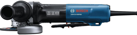 Compact yet powerful, the Bosch GWX14-50PBD 5 In. X-LOCK™ angle grinder combines high performance and comfort for grinding and cutting applications. The powerful 13-amp motor delivers 11,500 rpm for maximum performance and productivity. Complete with X-LOCK™ mount to make wheel changes up to five times faster than conventional interfaces. A narrow, lightweight design provides an outstanding power-to-weight ratio and better ergonomics. The larger paddle switch allows for various handling positions and greater control, while the brake system helps to quickly stop the wheel when the paddle is released. Fitted with an anti-vibration side handle for increased user comfort in longer applications. Engineered with KickBack Control, soft start, overload and restart protection and drop control to help turn off the grinder if accidentally dropped. Compatible with existing Bosch grinding guards and shrouds for use in a range of metal and concrete applications.