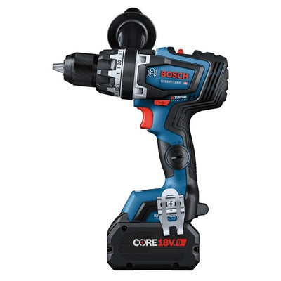 The Bosch GXL18V-260B26 2-Tool Connected Combo Kit features the PROFACTOR™ GSB18V-1330C 1/2 In. Hammer Drill/Driver, which provides 1,330 In.-Lbs. of max torque for the toughest drilling jobs. It is part of the PROFACTOR™ System, which pairs BITURBO Brushless™ Technology with a CORE18V® PROFACTOR™ battery. This powerful hammer drill/driver has KickBack Control to help reduce the risk of user injury and Electronic Angle Detection to ensure accurate drilling at desired angles. The included connectivity modules allow for setting precise angles and adjusting the LED worklight. The GDX18V-1860C two-in-one impact driver/wrench goes from impact wrench to impact driver fast. It features a 1/4 In. quick-change hex shank with power groove for bits, and a 1/2 In. square drive for sockets. Preset modes, such as Auto Stop which helps prevent overdriving, can be fine-tuned to the job at hand via the Bosch Toolbox App (connectivity module included). The turbo charger can charge a CORE18V® 8 Ah High Power Battery up to 50% charge in 15 minutes, the 4 Ah to 50% in only 9 minutes. The charger can connect via an included Connectivity Module, linking it to a connected device for battery health, charge level and charge mode statuses. The two brushless tools in the GXL18V-260B26 kit provide professional dependability, the two CORE18V® batteries deliver plenty of power and runtime, and the Turbo charger gets you back up and running fast.