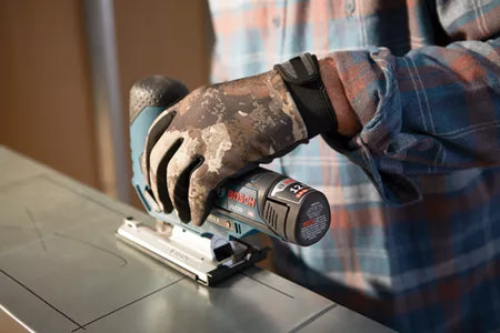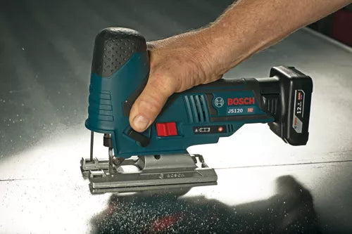 The Bosch JS120 12V Max Barrel-Grip Jig Saw provides fast cutting and long runtime, making it ideal for cutting out unique shapes in multiple materials. An outstanding tool for finish carpenters, cabinet makers or kitchen installers, this compact jig saw has a compact size – just 9.4 In. long and only 3.0 Lbs. (tool only, not including battery). It provides a three-stage orbital action to match cutting execution with application, powering up to 2,800 strokes per minute, and it has a counterbalanced low-vibration plunge mechanism. It has a 45° bevel angle range. This light jig saw can cut through wood and aluminum; it delivers a 2.5 In. maximum capacity in wood. It has single-handed blade change with a tool-free T-Shank blade design (does not accept U-shank blades). It also has an integrated LED light.