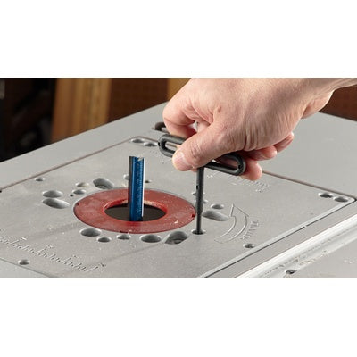 - Rigid aluminum mounting plate – predrilled for compatibility with variety of routers and for above-table router height adjustment
