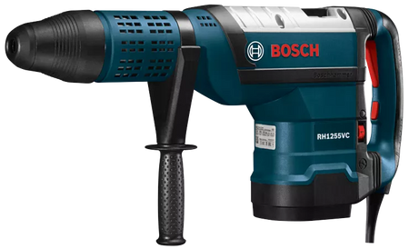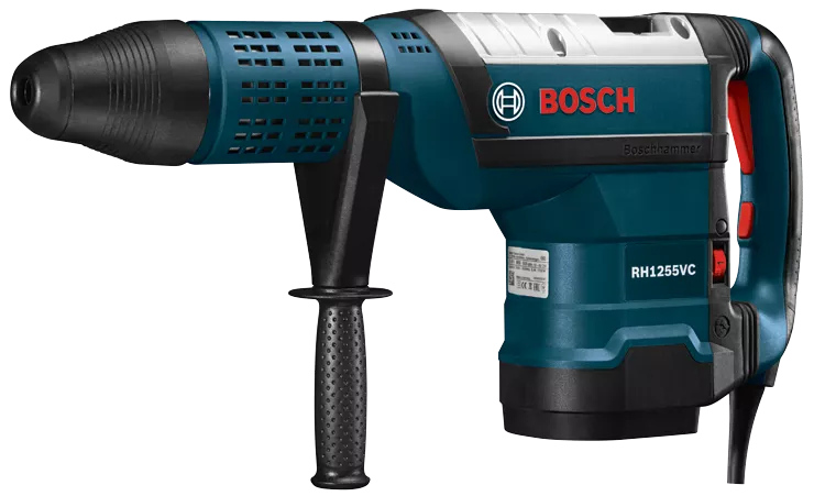 The Bosch RH1255VC SDS-max® 2 In. combination hammer has Turbo Power, which gives the tool a torque and speed boost in hammer mode. It also provides 14.1 Ft.-Lbs. of impact energy for top-rated power. At under 27 Lbs., it has outstanding performance-to-weight ratio in a 2 In. hammer. It features Vibration Control for additional operator control while mitigating vibration in the hammer mechanism and in the handle. This hammer provides Constant Response circuitry for smooth starts, precise hole placement and constant speed under load. Vario-Lock positioning permits rotating and locking the chisel with precision. And the SDS-max® bit system provides toolless bit changes.