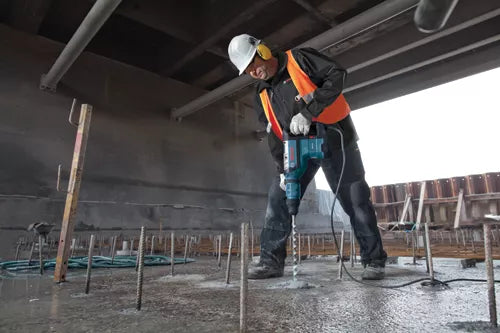 The Bosch RH745 SDS-max® 1-3/4 In. rotary hammer features best in class drilling and chiseling performance with 8.2 Ft.-Lbs. Impact energy (EPTA). The hammer features two modes of operation. Rotary hammer or hammer-only and a variable speed dial for controlled drilling and chiseling applications. The tool also features the Vario-Lock function. This allows the chisel to be rotated into 12 different positions to optimize the working angle when used in hammer only mode.