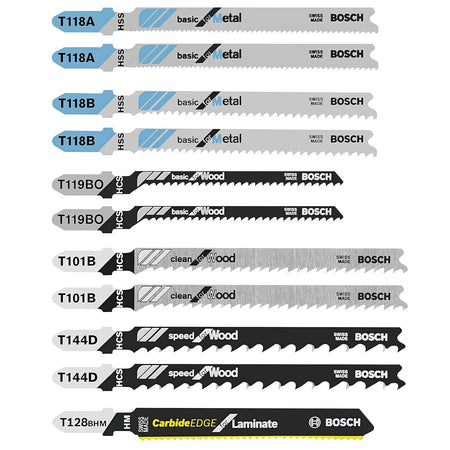 BOSCH T11C, 11 pc. Laminate/Wood/Metal T-Shank Jig Saw Blade Set