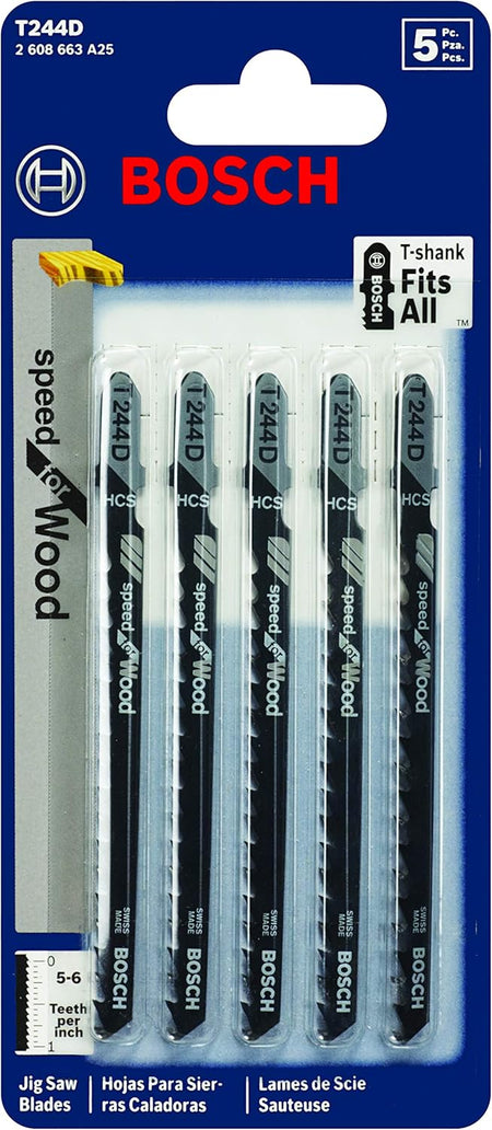 BOSCH T244D, 4", 6TPI, HCS BOSCH Shank Jigsaw Blade (5 Pk)