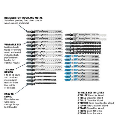 BOSCH T30C, 30pc Wood/Metal Jigsaw Set