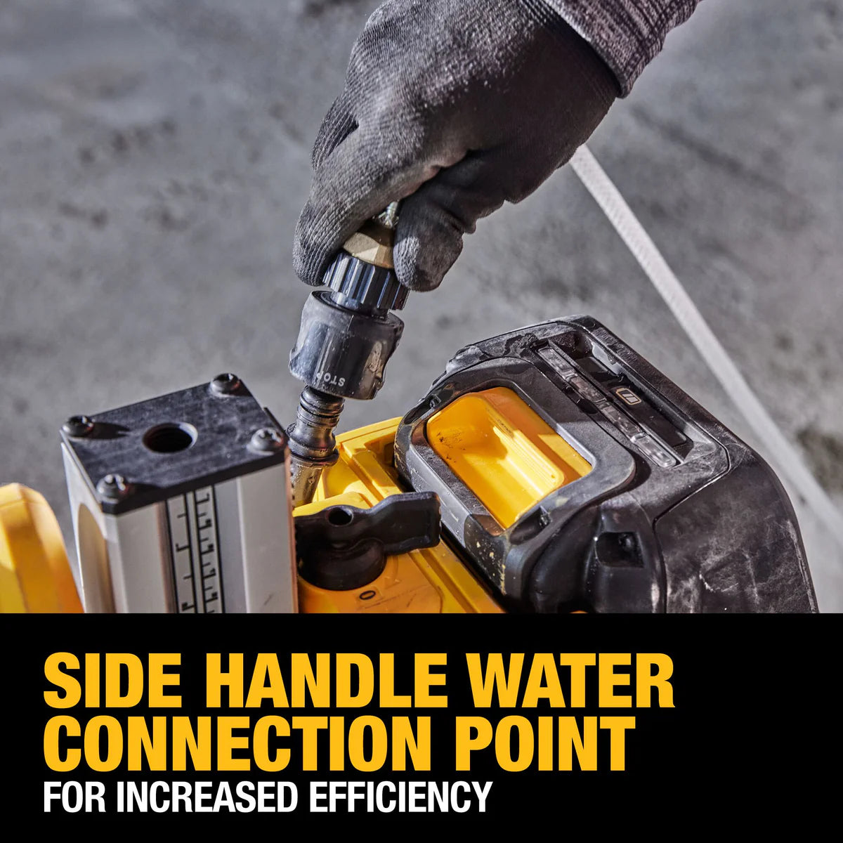 - Side Handle Water Connection Point - Side Handle with adjustable thumb wheel to easily adjust water rate without having to stop working for increased efficiency (DCE6820 Water Tank sold separately)