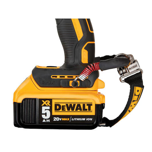 - Lanyard ready™ attachment point is designed for users to utilize a lanyard to tether the tool and battery to rigid structures on jobsites