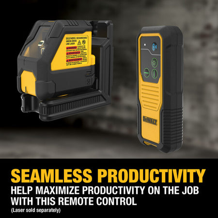 Long-Range Functionality - Conveniently make adjustments from a distance with up to 330 ft. (100m) remote control range*Seamless Productivity - Help maximize productivity on the job by remotely adjusting your DEWALT Green Crossline and Spot Lasers (DCLE14221G/GB & DCLE14251G/GB, sold separately) using this Remote ControlJobsite Ready - Power your remote with the (2) included AA batteries