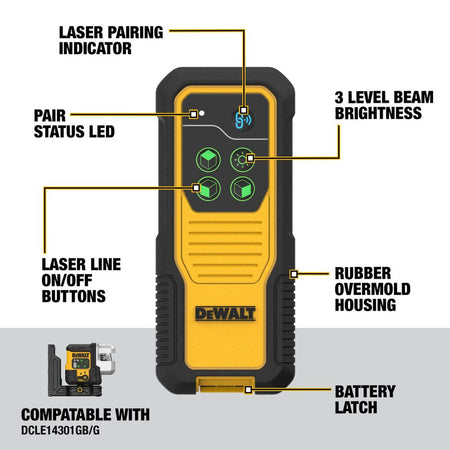 - Seamless Productivity - Help maximize productivity on the job by remotely adjusting your DEWALT (DCLE14301G/GB) Green 3X180° Line Laser (sold separately) using this Remote Control