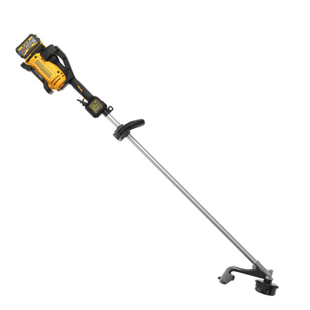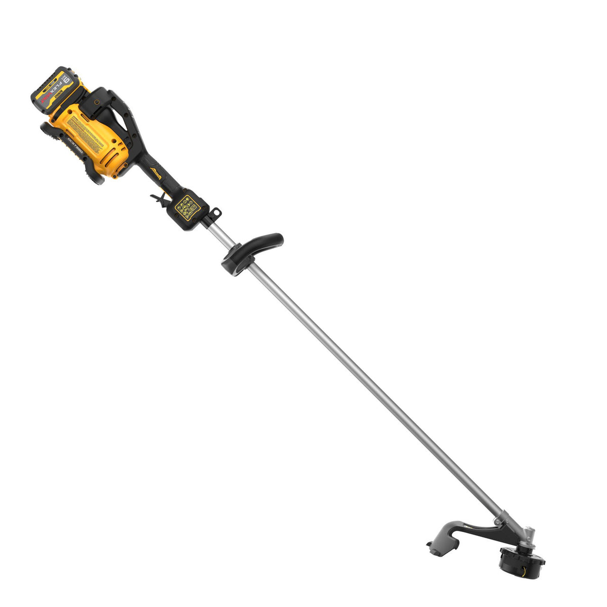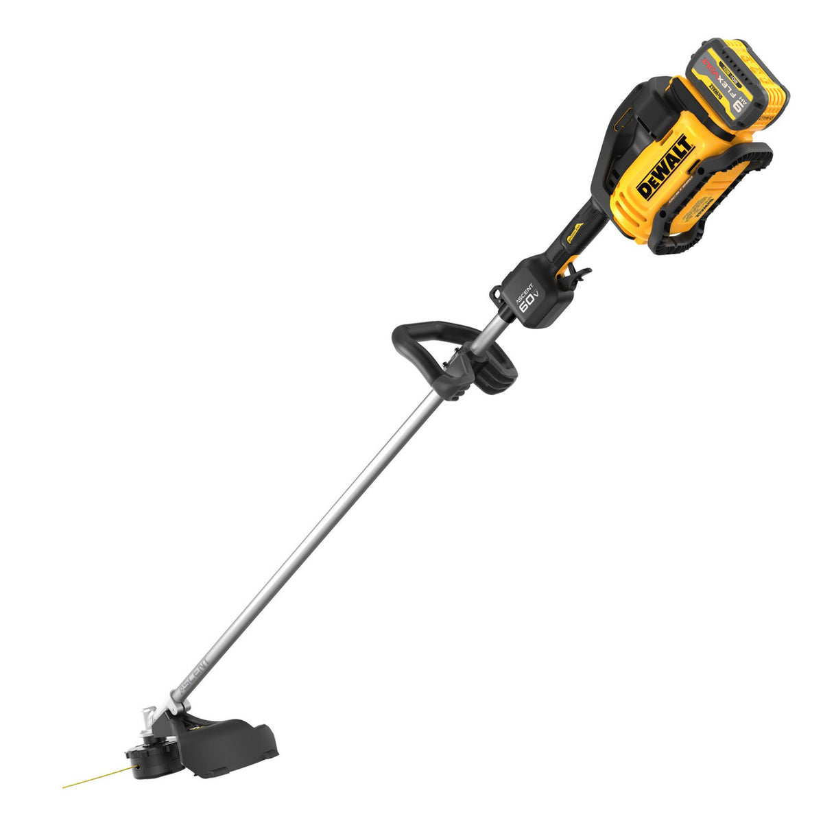 Built for professional landscapers, this 60V MAX* 17.5-In. String Trimmer Kit is designed to deliver the power, efficiency, and comfort to tackle tough overgrowth. Provides peak torque of up to 63% greater than a 36cc gas string trimer†. Achieves peak power 18% greater than a 36cc gas string trimmer‡, and is 70% quieter compared to a 36cc gas string trimmer**. This string trimmer features a 17.5-in. swath designed to plow through tough brush and overgrowth and is capable of handling both .095 and .105 line. LED display built to quickly communicate vital information. Also includes a D-Ring handle and harness. Kit includes (2) DCB609 60V MAX* batteries and chargers.