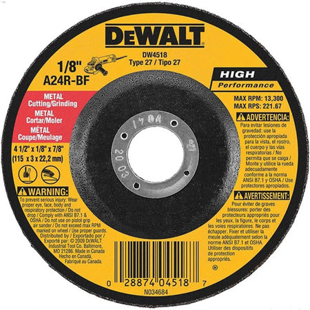 DeWalt DW4518, 4-1/2'' X 1/8'' Metal Cut Wheel (25/Pack)