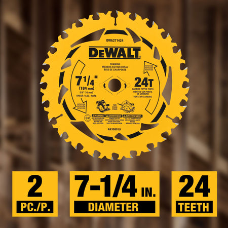 DEWALT DWA271424PK2, 7-1/4 in. 24T Circular Saw Blade (2-Pack)
