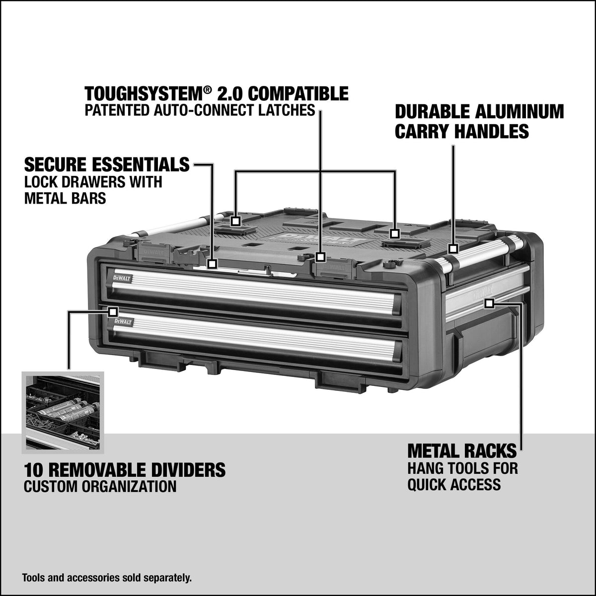 - Optimize organization - customize internal organization of tools and accessories with the included heavy-duty removable dividers, or TOUGHSYSTEM 2. 0 shallow tool trays and tool sets (sold separately).