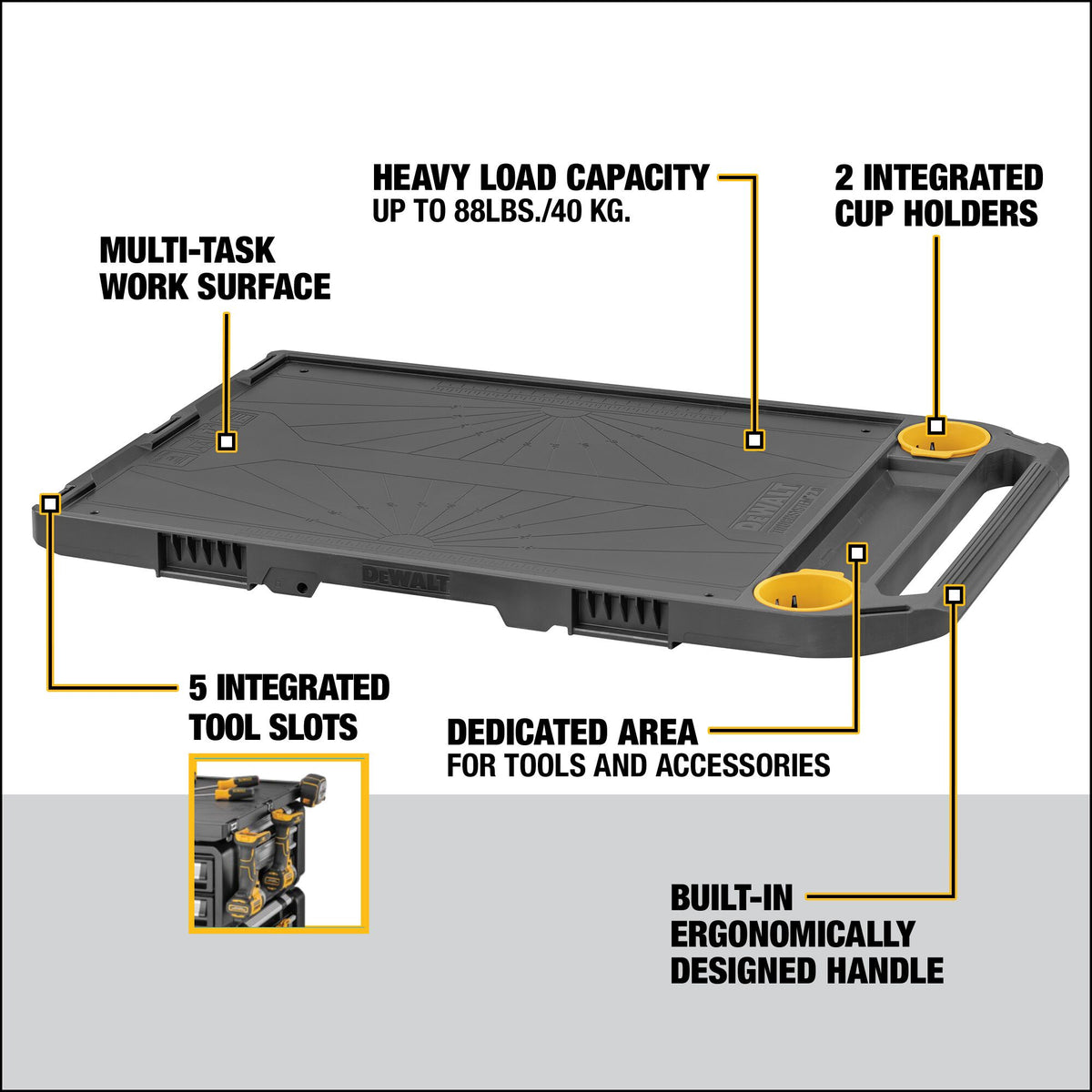 Stay on top of tough jobs with this durable TOUGHSYSTEM 2.0 DXL 30 in. Worktop. Built to work with TOUGHSYSTEM 30 in. Workstation units (sold separately), this surface provides functional space for a wide range of tasks. Featuring integrated slots for hanging tools and 2 versatile cup holders for built-in convenience, this work top delviers a customized workstation when paired with TOUGHSYSTEM 2.0 DXL 30 in. Drawers or any other TOUGHSYSTEM 2.0 module (each sold separately).
