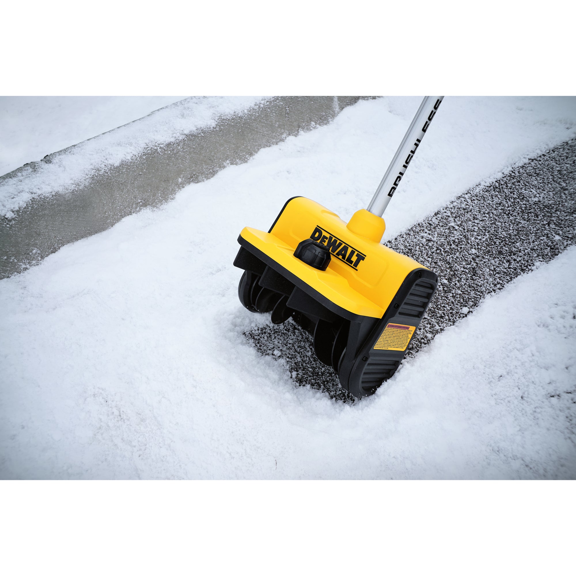 The DeWalt branded 20V Max Cordless Snow Shovel is the ultimate solution for quick and efficient snow removal. With a 10″ cleaning width and 6″ depth per pass, it clears paths effortlessly, throwing snow up to 20 ft. away. Its 60-degree snow guide ensures precise discharge direction, while the brushless high-efficiency motor delivers up to 20 minutes of runtime on a 4.0Ah battery. Weighing only 13 lbs, it’s ergonomically designed for comfortable use. Battery and charger sold separately.