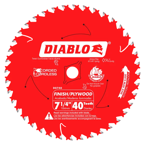 Diablo's Finish Saw Blade for Wood is ideal for smooth finish crosscuts in hardwood, softwood or plywood. Diablo Finish blades are the perfect choice for excellent rips and crosscuts using a portable saw. They deliver a smoother edge than framing blades, but still provide an excellent combination of cutting speed and long life. A great choice for jobsite finish cuts in 1X, decking, fencing, fascia and plywood