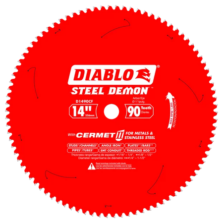 Diablo D1490CF, 14 in. x 90 Tooth Cermet II Saw Blade for Metals and Stainless Steel