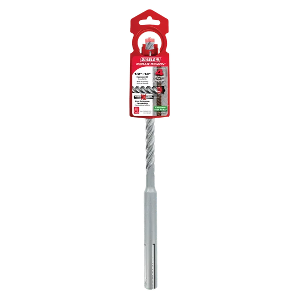 - Diablo made Dura-Carbide™ features up to 2X more carbide that withstands up to 1800°F of intense heat to combat rebar hits versus standard bits that fail at 800°F