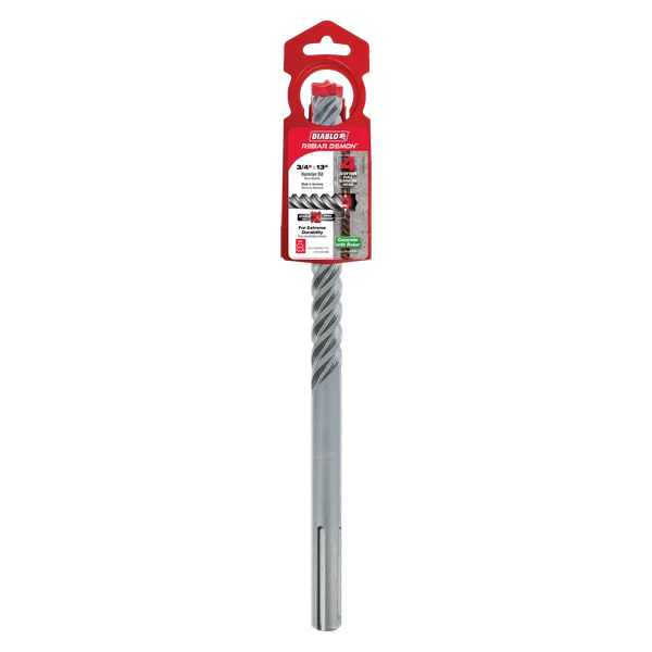 - Diablo made Dura-Carbide™ features up to 2X more carbide that withstands up to 1800°F of intense heat to combat rebar hits versus standard bits that fail at 800°F