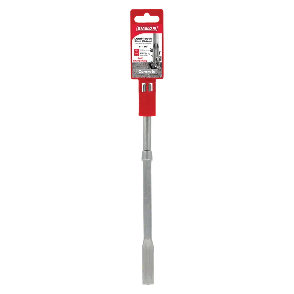 Diablo’s SDS-Max Flat Chisels deliver extreme durability and stability in general demolition work, adjustment work, restoring joints and clearing reinforcements. A unique heat treatment process strengthens the steel body to withstand the stress and impact of high-powered hammer drills in concrete. Optimized for maximum performance in corded and cordless SDS-Max rotary hammers.