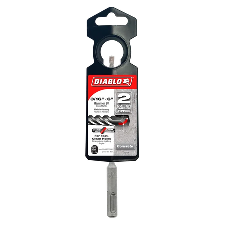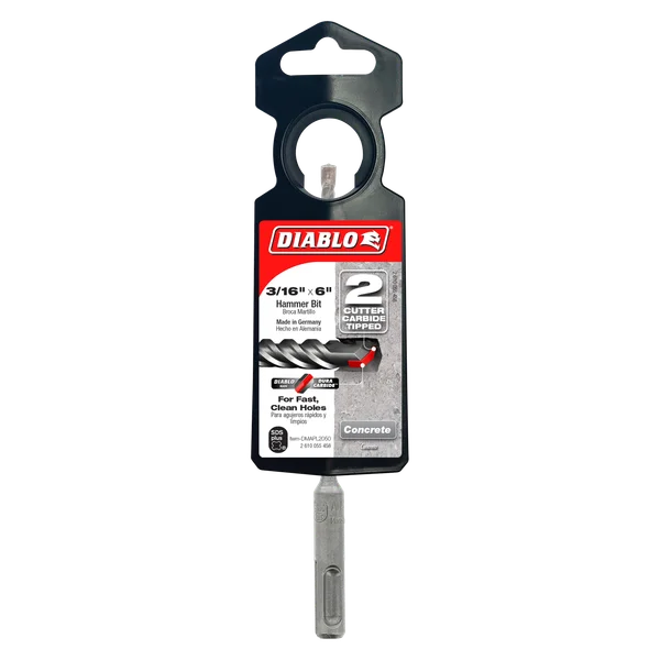 Diablo’s SDS-Plus 2-Cutter Carbide-Tipped Hammer Drill Bits provide one of the fastest and longest lasting drilling solutions on the market for concrete. Optimized with a unique brazing and hardening process, the carbide tips extends life and productivity, allowing users to drill fast, accurate holes. The Peak Point tip design allows for aggressive starts that produce clean, fast holes for common sized anchors. Optimized for maximum performance in corded and cordless SDS Plus rotary hammers.