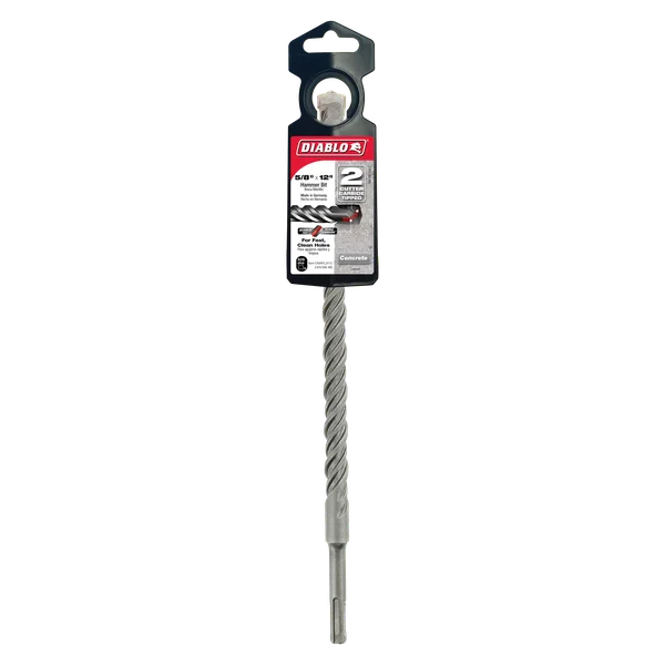 Diablo’s SDS-Plus 2-Cutter Carbide-Tipped Hammer Drill Bits provide one of the fastest and longest lasting drilling solutions on the market for concrete. Optimized with a unique brazing and hardening process, the carbide tips extend life and productivity, allowing users to drill fast, accurate holes. The Peak Point tip design allows for aggressive starts that produce clean, fast holes for common sized anchors. Optimized for maximum performance in corded and cordless SDS-Plus rotary hammers.