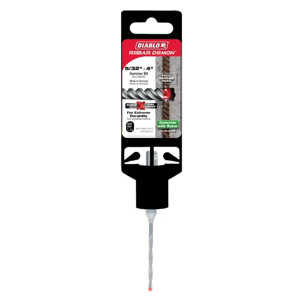 Diablo DMAPL4010, Rebar Demon™ SDS-Plus 4-Cutter Full Carbide Head Hammer Drill Bit 5/32" x 2" x 4"