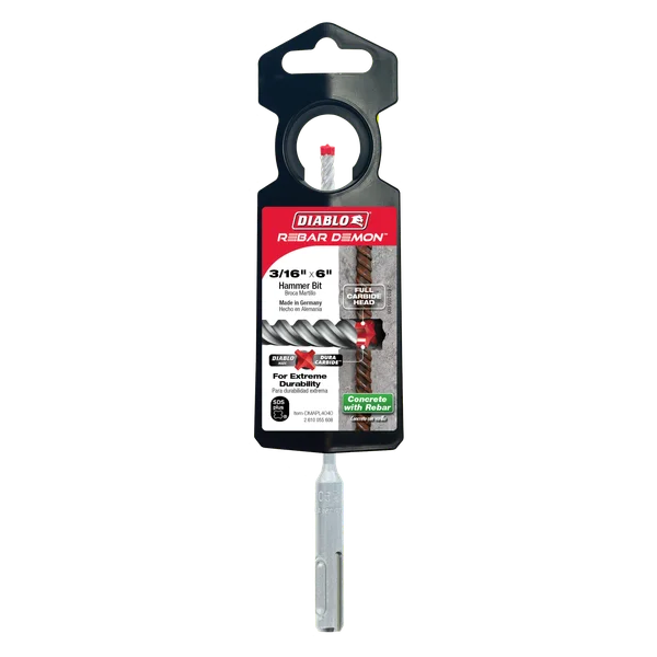 Diablo DMAPL4040, Rebar Demon™ SDS-Plus 4-Cutter Full Carbide Head Hammer Drill Bit 3/16" x 4" x 6"