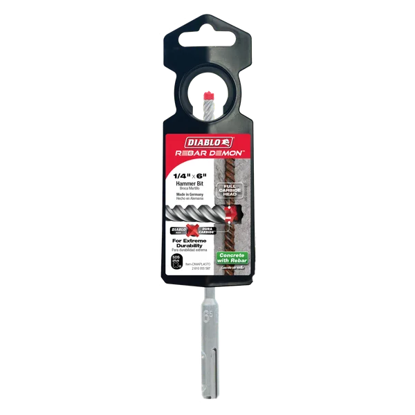 Diablo DMAPL4070, Rebar Demon™ SDS-Plus 4-Cutter Full Carbide Head Hammer Drill Bit 1/4" x 4" x 6"