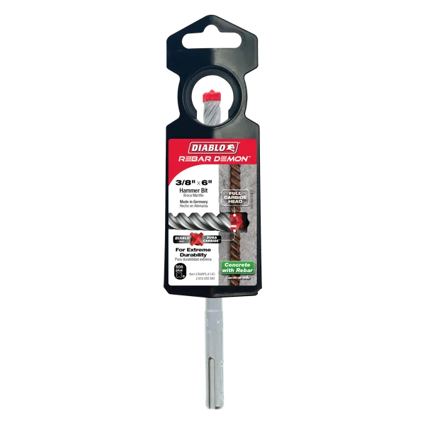 Diablo DMAPL4140, Rebar Demon™ SDS-Plus 4-Cutter Full Carbide Head Hammer Drill Bit 3/8" x 4" x 6"