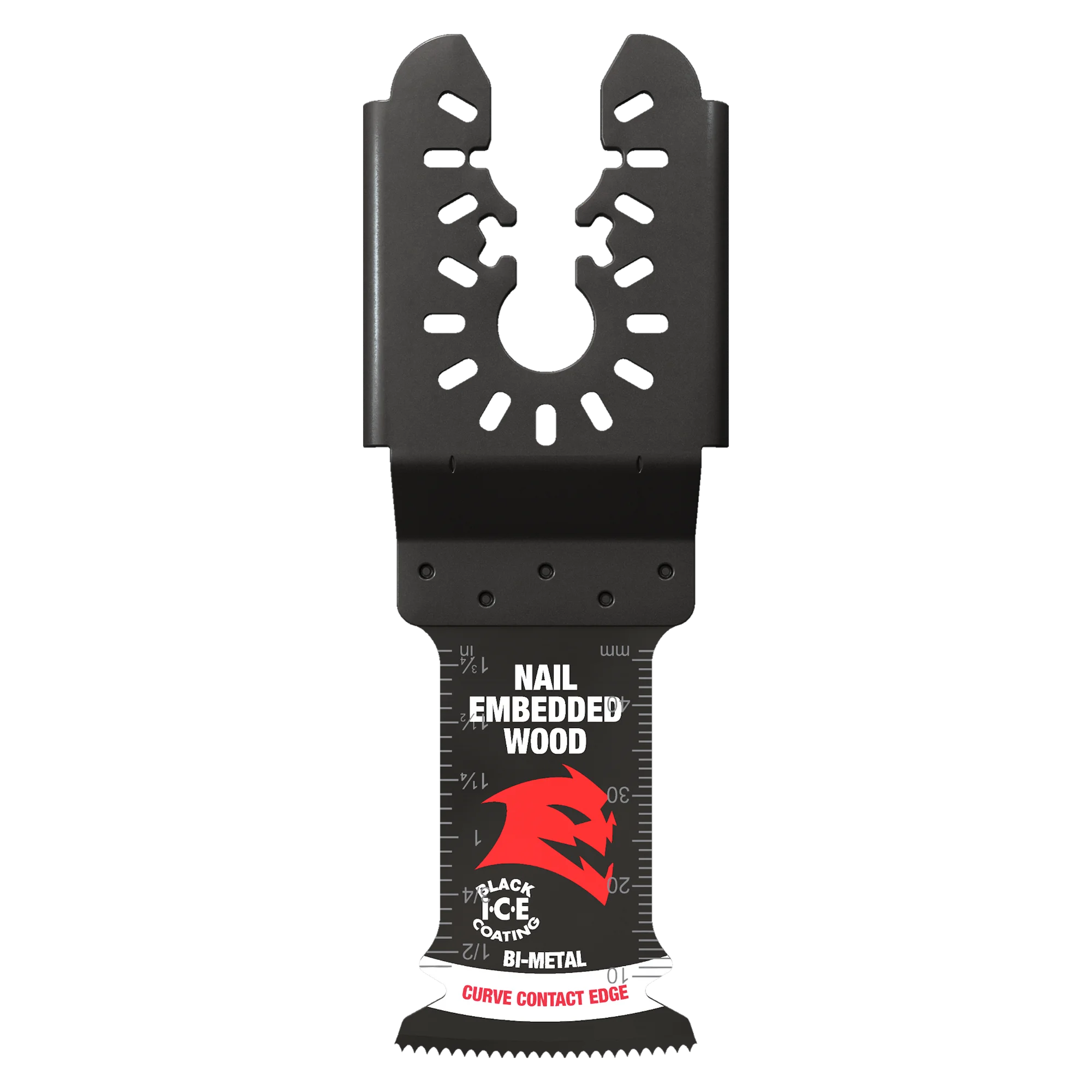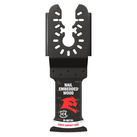 Diablo’s Demo Demon™ universal fit bi-metal oscillating blades feature application specific designs that deliver maximum durability and longer life in nail-embedded wood applications. These high-performance blades feature an ultra-hardened cutting edge to deliver up to 5X longer life than standard blades. Curve contact edge creates a pilot for precise, clean plunge cuts with less vibration. Black I.C.E. (Industrial Cooling Element) coating protects cutting edge against wear for extreme durability and longer blade life. The blade’s universal fit, adapter-free design easily attaches most tools, with the exception of Starlock tools.