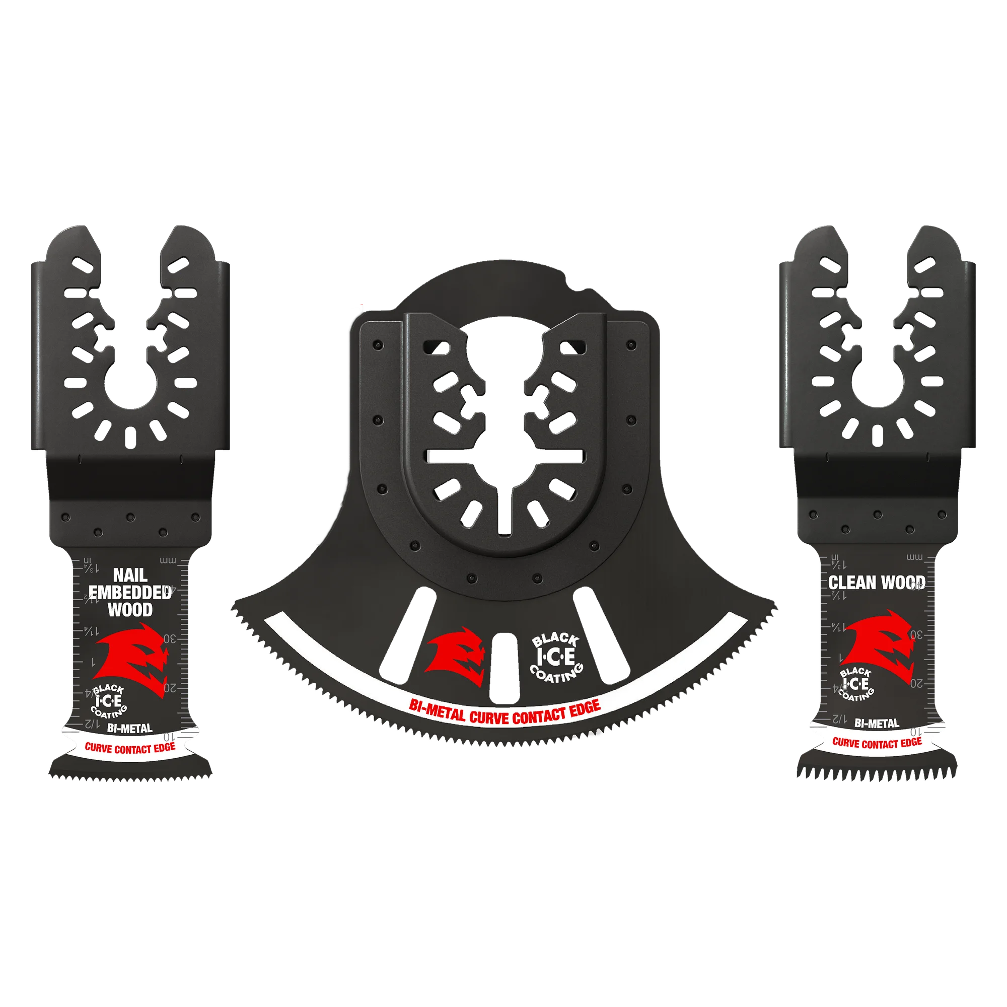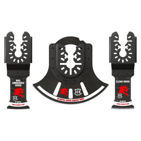 Diablo’s universal fit bi-metal oscillating blades feature application specific designs that deliver extreme durability and superior cutting life in multiple applications ranging from nail-embedded wood, clean wood, metal and plastics. These high-performance blades feature an ultra-hardened cutting edge to deliver up to 5X longer life than standard blades. Curve contact edge creates a pilot for precise, clean plunge cuts with less vibration. An optimized blade design and Black I.C.E. (Industrial Cooling Element) coating protects cutting edge against wear for extreme durability and longer blade life. The blade’s universal fit, adapter-free design easily attaches to most tools, with the exception of Starlock tools.