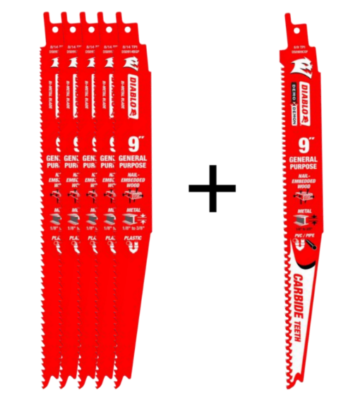 Diablo DS0914BGP5PC, 5+1 9” 8/14TPI Bi-Metal General Purpose Reciprocating Saw Blades for Nail Embedded Wood and Metal Cutting