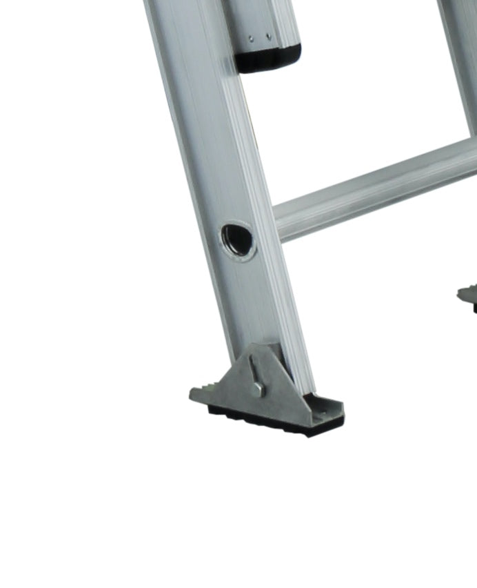 This Featherlite 16 foot aluminum industrial extension ladder has a 300 lb load capacity, rated ANSI Type IA. It is equipped with the MAXLOCK rung lock, custom engineered from a patented, advanced molecular polymer, MAXLOCK is the strongest, toughest, lightest rung lock ever made. This ladder includes the patented QuickLatch RungLock system that provides a simple, intuitive method of securing the fly and base sections of the ladder when extended. This ladder also features outside slide guides, D-shaped rungs fully serrated for a slip resistant surface, mar-resistant rail end caps, and swivel safety shoes to be used as tread down or in spike position. The Featherlite 3216D aluminum extension ladder meets or exceeds the safety standards set by ANSI, CSA, and OSHA.